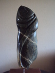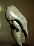 2004Zeer verrassend aan alle kanten ik heb mij laten leiden door de steen. Sculptuur staat door de pin los van de sokkel dit versterkt het 'zwevend effect' sokkel zwart marmer.