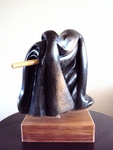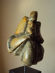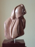 2008DIT SCULPTUUR IS UITGEWERKT MET VEEL PLOOIEN. IK WERKTE MET EEN SJAAL OM DE BEZEMSTEEL,OM ZO DE KNOOP RONDOM TE BEWERKEN IN STEEN.