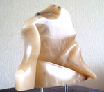 THEA SABELIS Mijn uitdaging is: door stoffen in steen uit te drukken op zoek naar plooien, nog mooier en krachtiger. Dat is voor mij DE uitdaging. Abstracte beelden van steen: albast